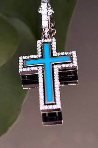 A small Catholic cross of the Petite Harmony series is made of white 18K gold, decorated with enamel and carefully selected diamonds. The modesty of the shape and the nobility of the stones give the piece a special beauty. Сoloured enamel, a unique component of the VARVARA Collection brand, adds value and exclusivity to the piece.